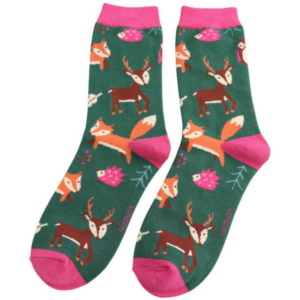 Miss Sparrow London Green Woodland Animals Bamboo Socks