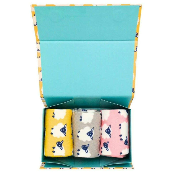 Miss Sparrow London Yellow 3 Pack Happy Sheep Sock Box