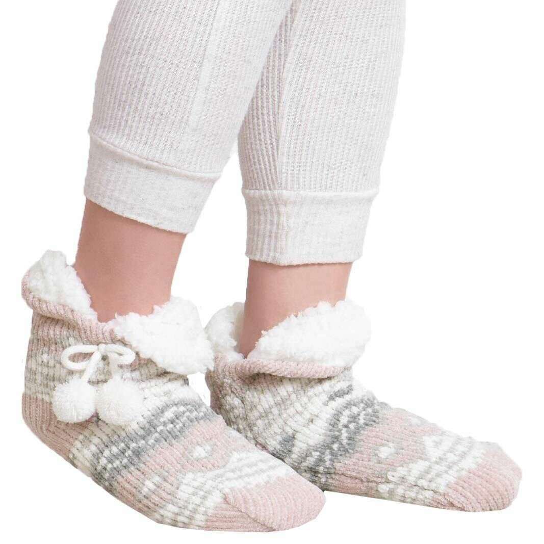 Totes Toasties Pink Crop Chenille Knitted Slipper Socks